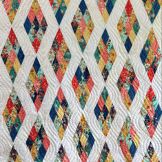 This playful, ultra-versatile pattern is packed with endless possibilities for coloring and layout options. If you love the charm of a scrappy look or prefer a more coordinated style, Strip N’ Dip shines either way! Use your favorite assortment of 2.5″ strips.